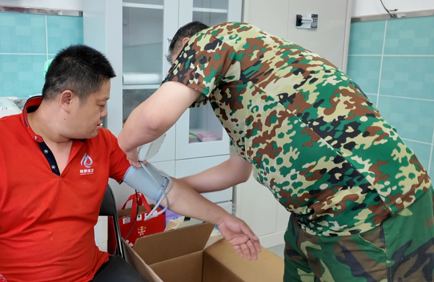 广大救援人员昼夜奋战一线,不少人出现皮肤感染、中暑等症状,还面临划伤、扭伤等意外伤害风险,中心及时为救援人员提供消毒包扎、药品急救等健康保障。刘保利医生一边为前来就诊的救援人员清创包扎,一边叮嘱他们注意补水休息:“救援人员冲在最危险的地方,我们必须确保他们的健康,才能帮助更多受灾的乡亲。”